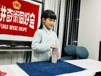 清水=ロープ切り、ハンカチのカラーチェンジ、ハンカチの結び目が取れ穴が開く