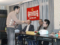 平成19年度の総会・新年会が鯖江市の神明苑で開催。総会は午後5時から事務局からの活動経過報告・決算報告が拍手で